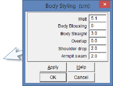 A variety of styling features can then be selected. Here a shoulder drop is being specified.